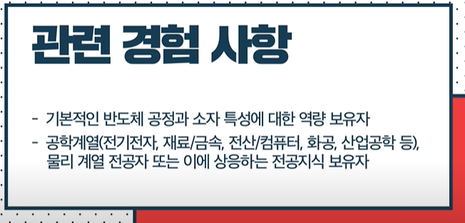 반도체 공정과 소자 특성에 대한 이해가 가능한 분이면 지원 가능합니다.